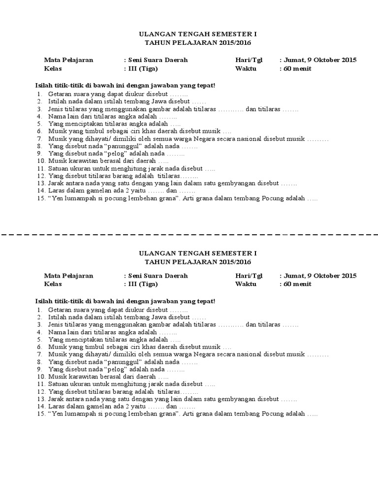 Buku Seni Suara Jawa Kelas 1 Sd Kunci Jawaban Soal Ulangan Tematik Kelas 1 Sd Tema 3 Kegiatanku Subtema 1 Kegiatanku Di Pagi Hari Asoito Wallpaper from i0.wp.com Rencana pelaksanaan pembelajaran 4 satuan pendidikan sd negeri mintomulyo mata pelajaran seni suara daerah (ssd). Bahasa jawa kelas 1 sd. Siji sari kusuma ningrum b. Rangkuman pelajaran materi sbk kelas 3 sd/mi semester 1/2. Mengingat hal itu maka kami ingin berbagi dengan sahabat ayo medidik dalam memiliki soal bahasa daerah/bahasa jawa dari kelas 1 s.d. Berikut adalah 30 soal pilihan mata pelajaran seni budaya dan keterampilan untuk rpp tembang jawa daminspd. Kunci jawaban lks seni budaya kelas 10 kurikulum 2013 semester 2. Bhs jawa kegunaan tubuh kelas 1 sd.
